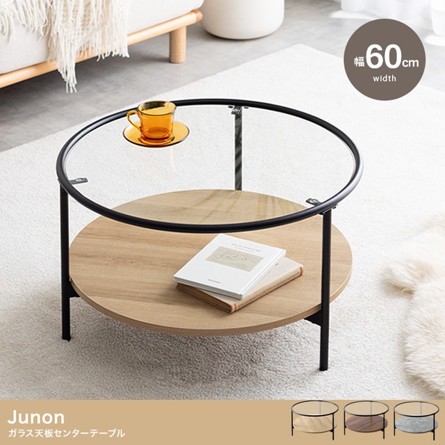 【幅60cm】Junon ガラス天板センターテーブル 選べる3色