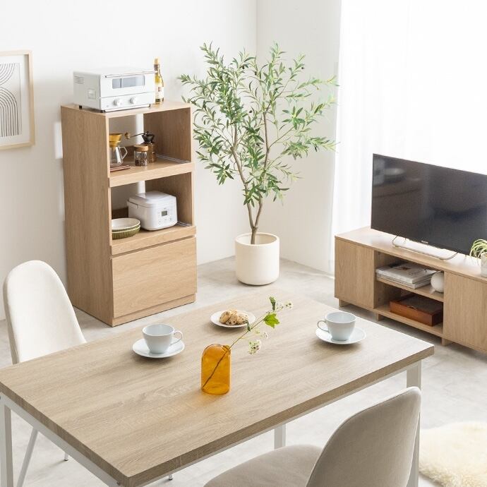 天板スペースは、レンジやトースター、コーヒーセットなど、置くものを選ばず自由にお使いいただけます。