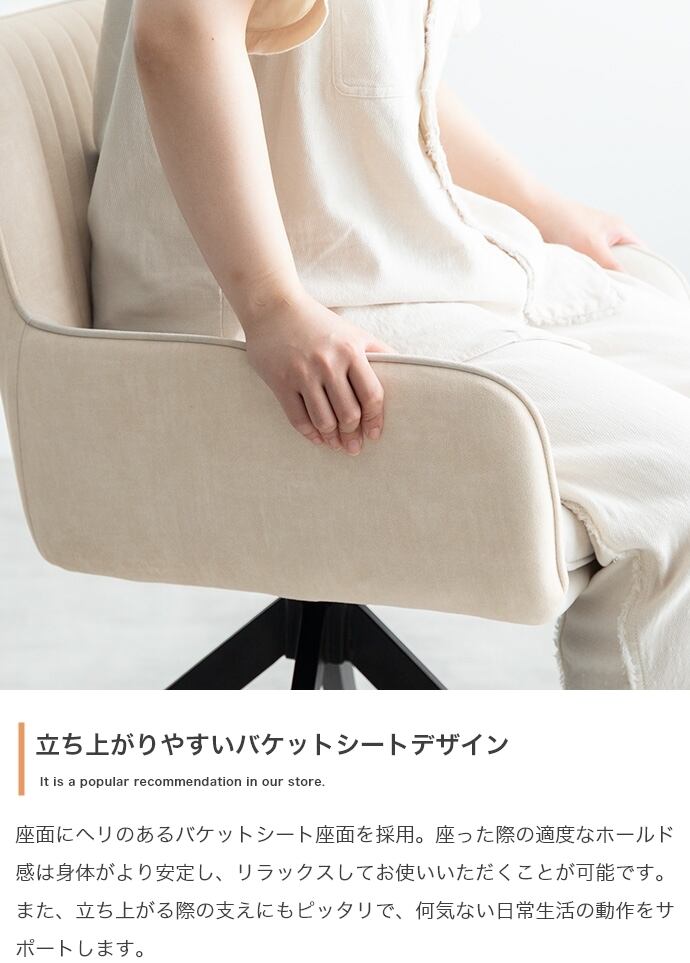 椅子を引かずに座りながら向きを変えられる回転式。立つ・座るの動作がスムーズに行えます。