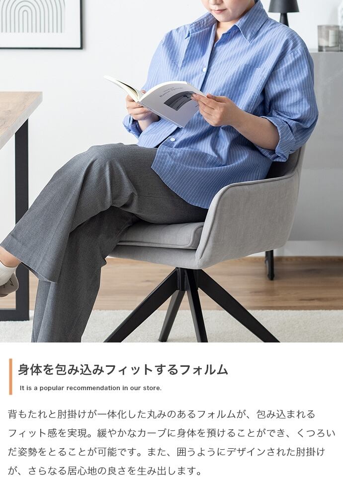 囲うようにデザインされた肘掛けが、さらなる居心地の良さを生み出します。
