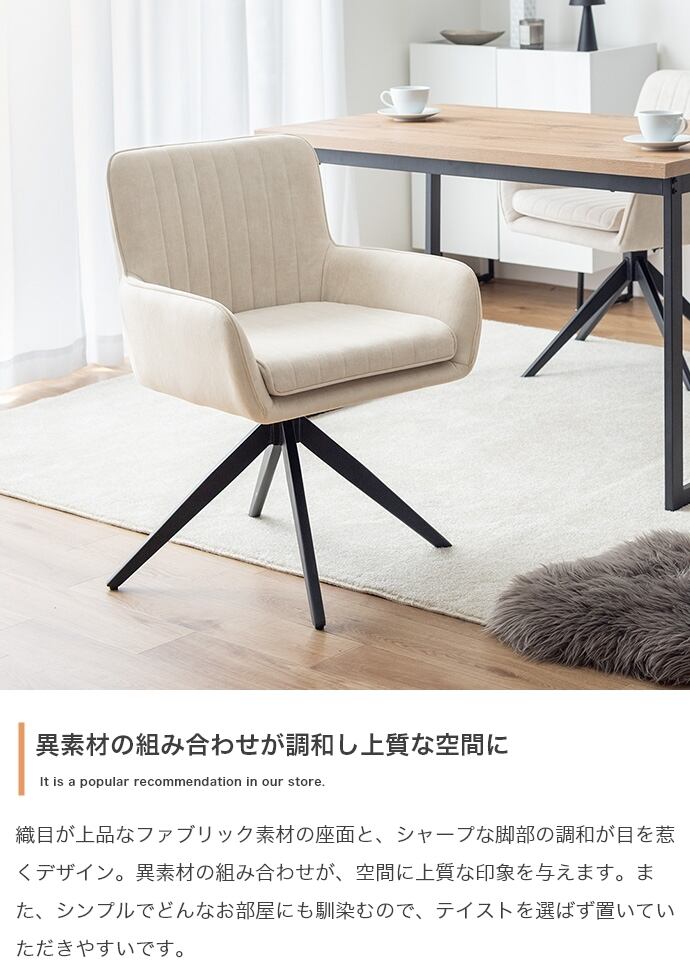 織目が上品なファブリック素材の座面と、シャープな脚部の調和が目を惹くデザイン。