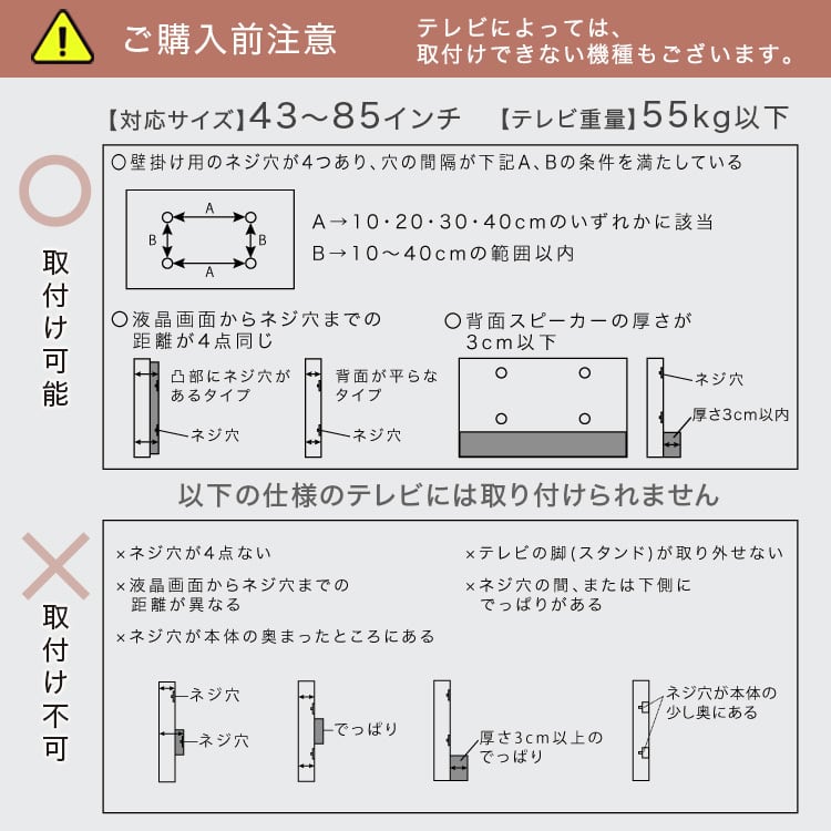 ・テレビ背面にネジ穴が4つあること
