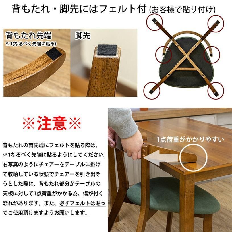テーブル天板に掛けられるように設計された半円状の背もたれが特徴のダイニングチェア2脚セット。
