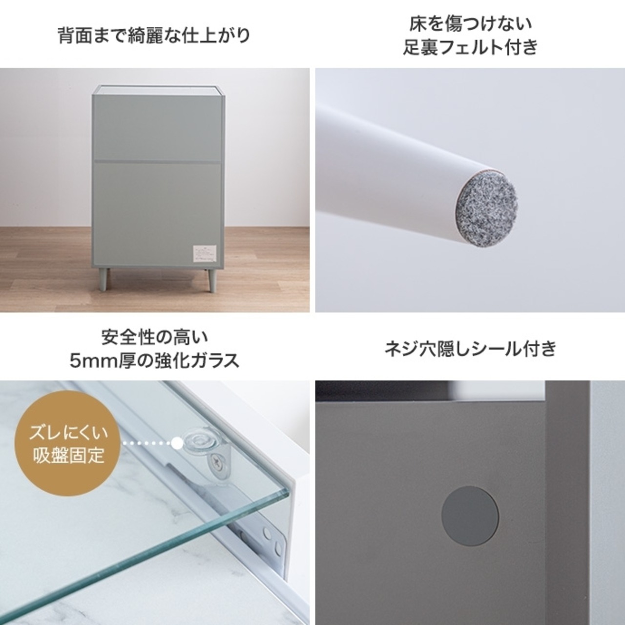 天板には美しい透明ガラスを採用。ホコリを防いで、美しく魅せるガラス収納。
