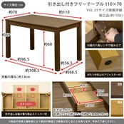 引出し付き フリーテーブル 110×70 ブラウン /ナチュラル