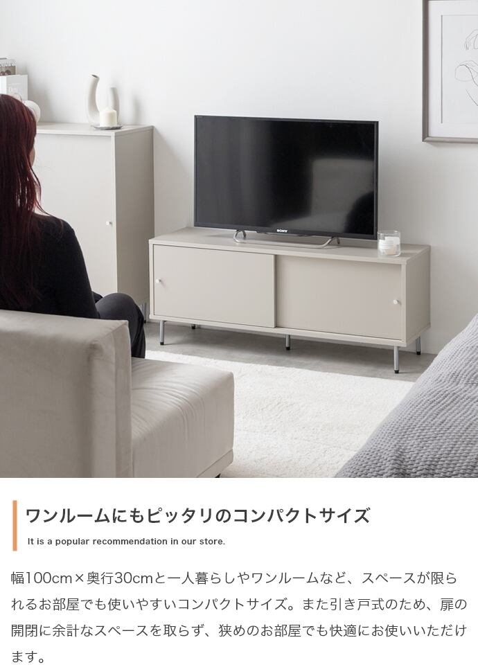 天板は幅100cmあり、様々なサイズのテレビに対応。