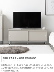 シンプルながらも洗練されたデザインで、空間にすっきり落ち着いた印象を与えるテレビ台。