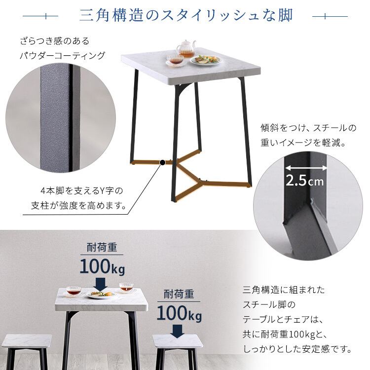 スタイリッシュなブラック脚と大理石調グレー、ホワイトの天板で高級感があります。