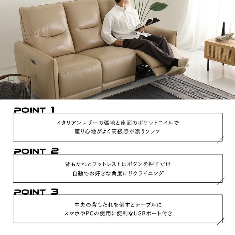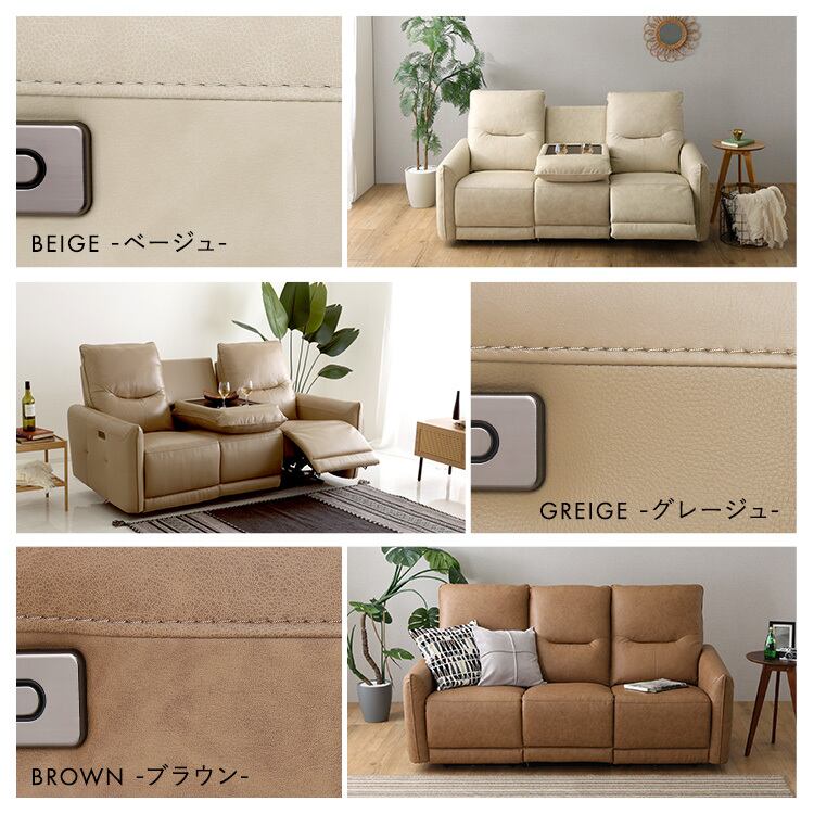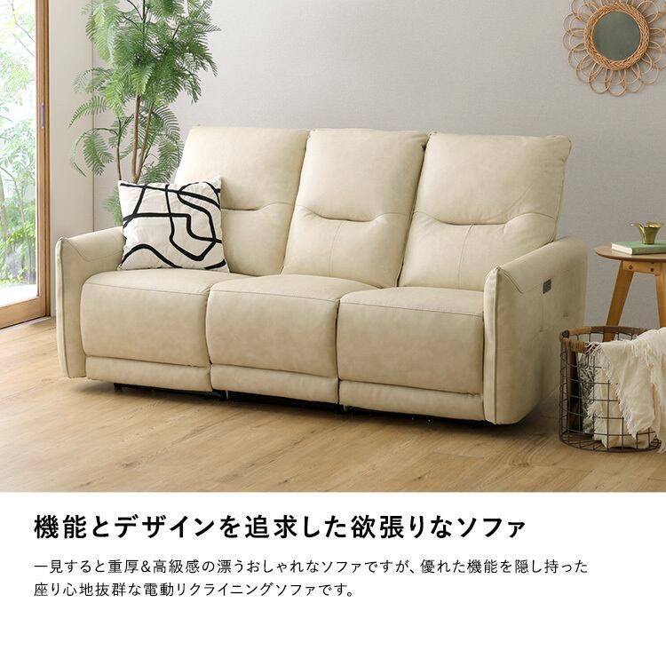 イタリアンレザー 3人掛け電動ソファ 【Kaela-カエラ-】 選べる3色