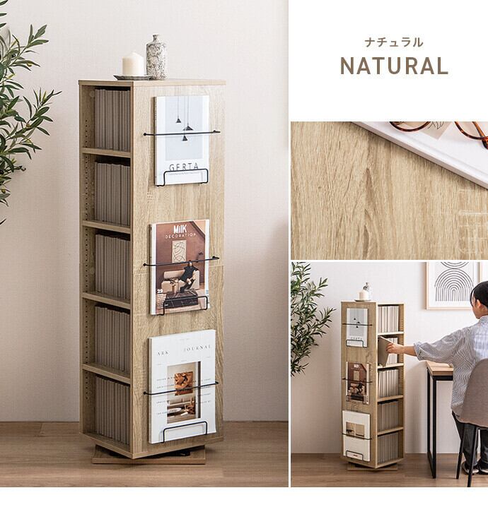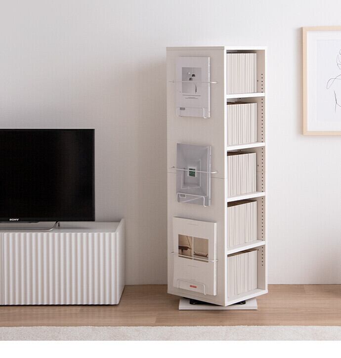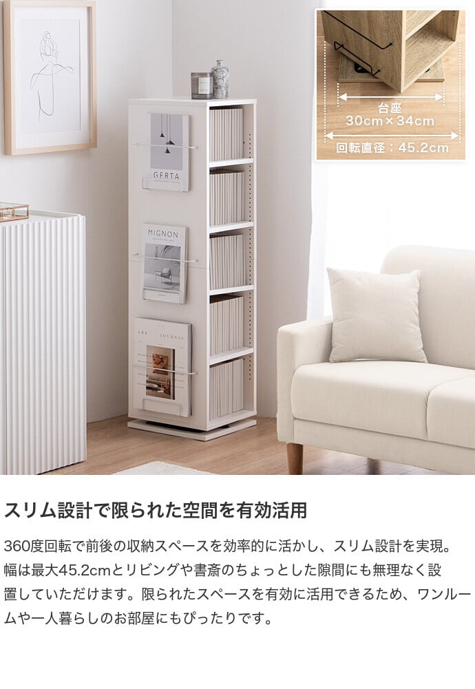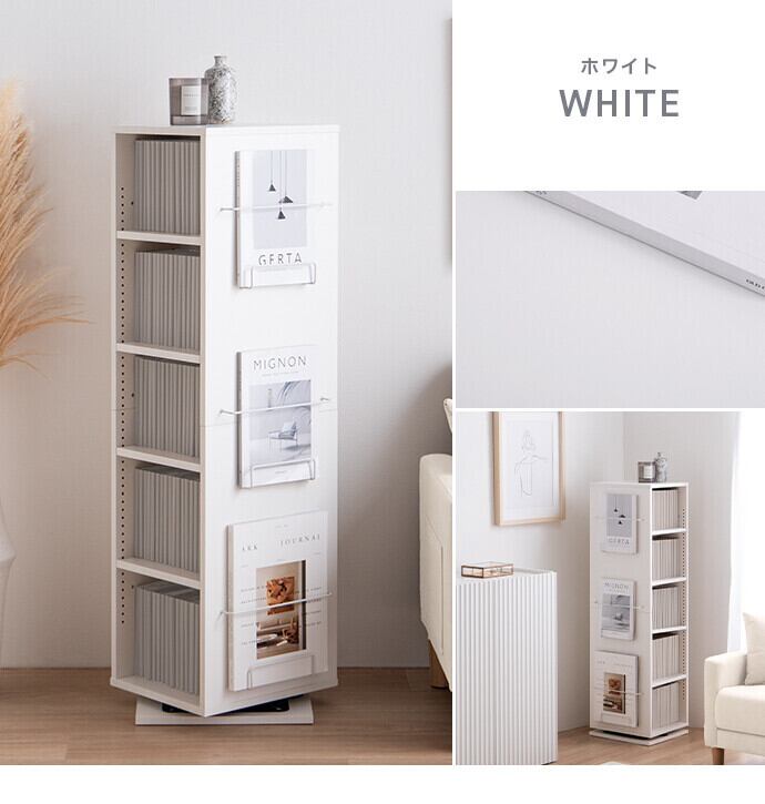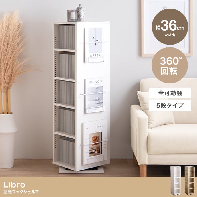 【幅36cm】Libro 回転ブックシェルフ(5段タイプ) ホワイト/ナチュラル