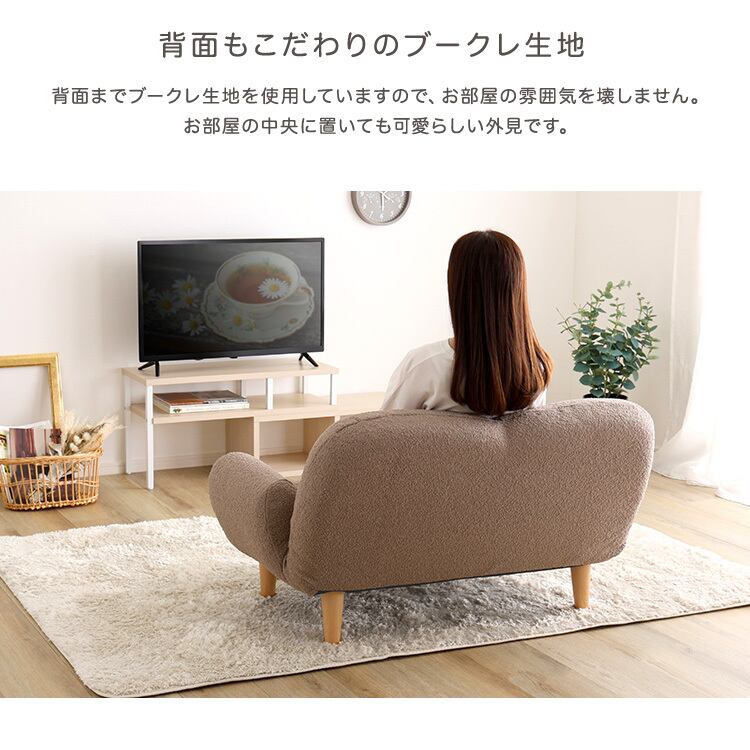 ふわふわ・モコモコした肌触りのブークレ生地を使用したソファです。