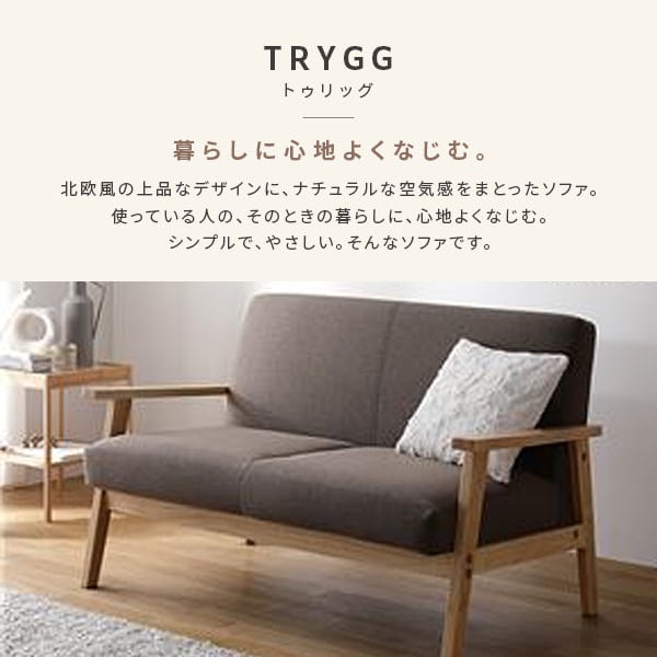 北欧風 2人掛け 木枠ソファ『TRYGG トゥリッグ』 インテリア家具 リビング家具 選べる3色