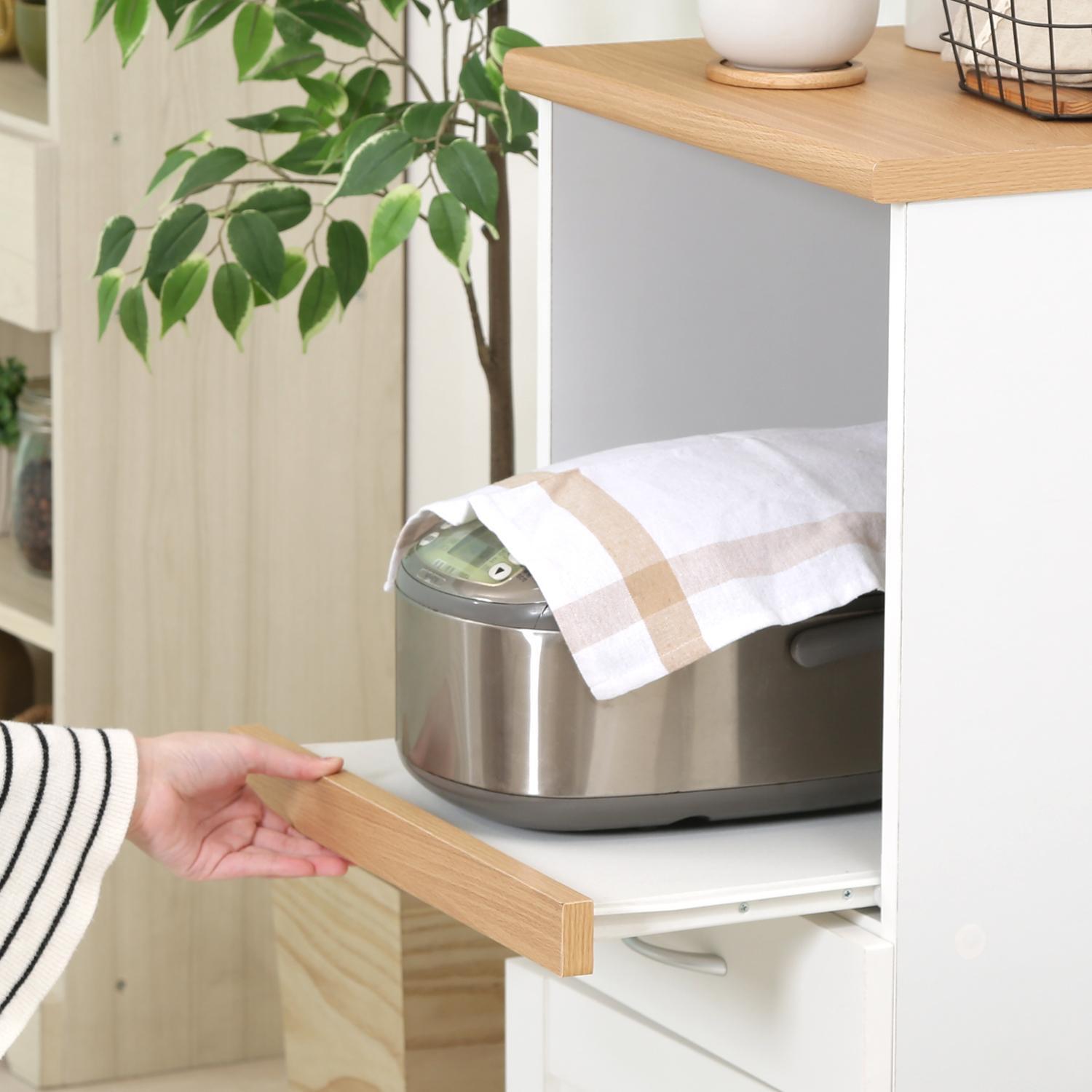 引き出して使えるスライド棚。炊飯時やお湯を沸かす際に出して使うことで、