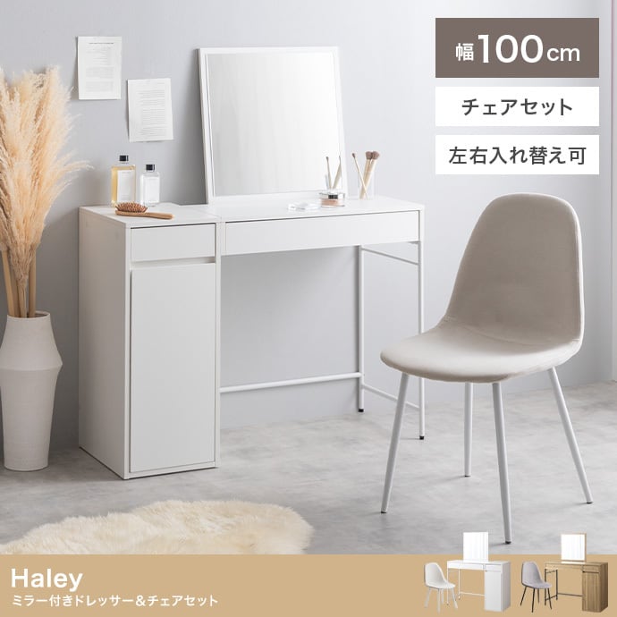 広々と使える天板とワイドミラー、たっぷり収納が魅力のドレッサー+チェアセット。
