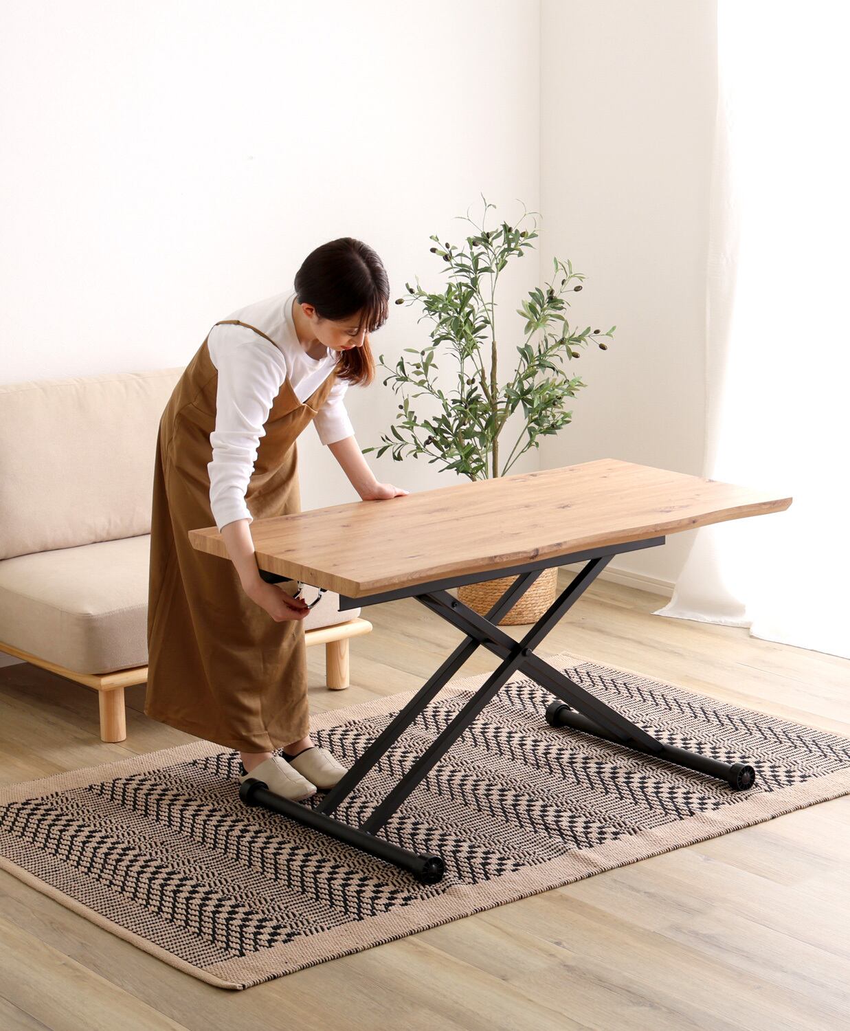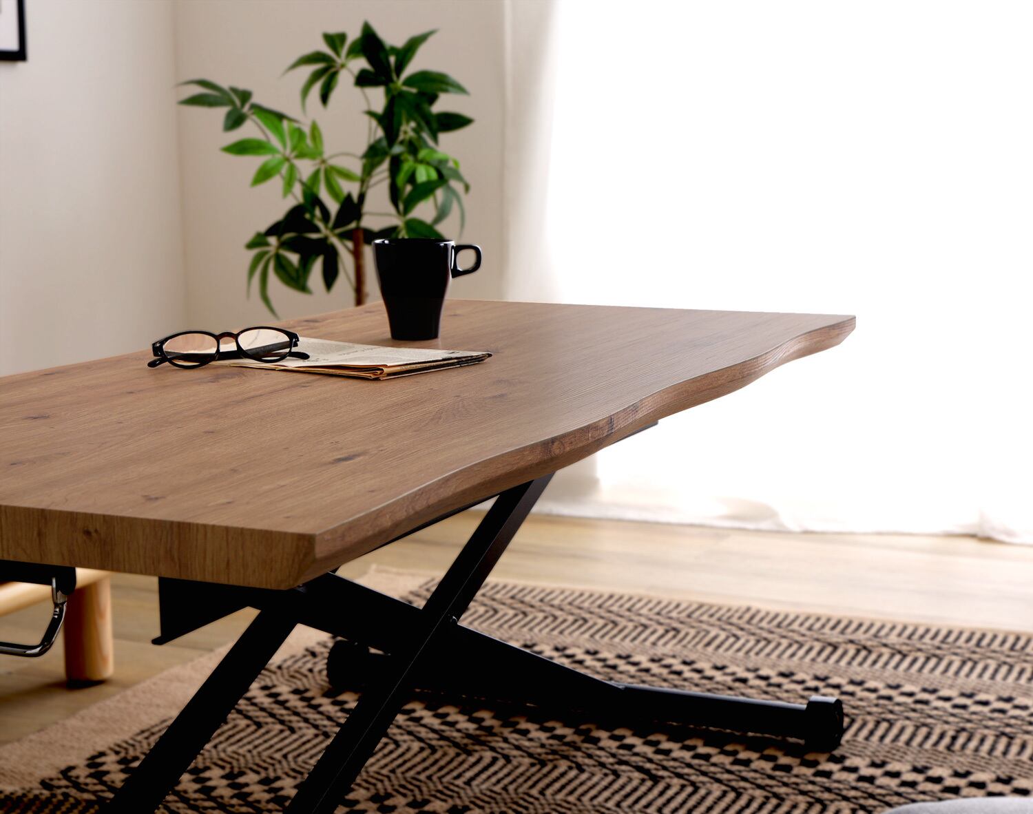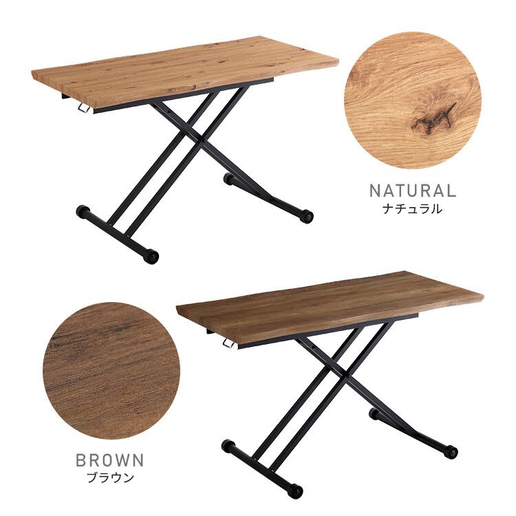 なぐり加工天板のリフティングテーブル 120cm幅 ナチュラル/ブラウン