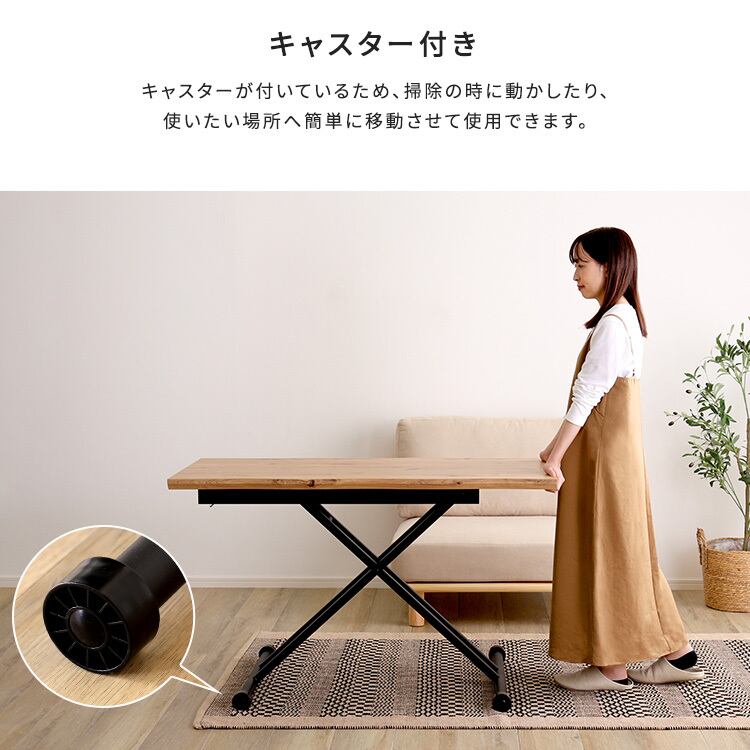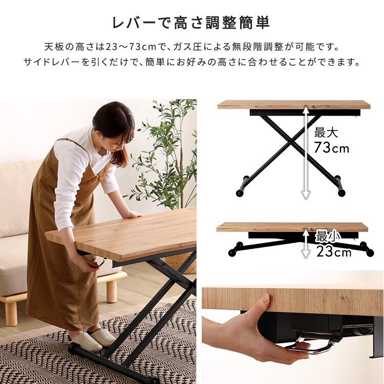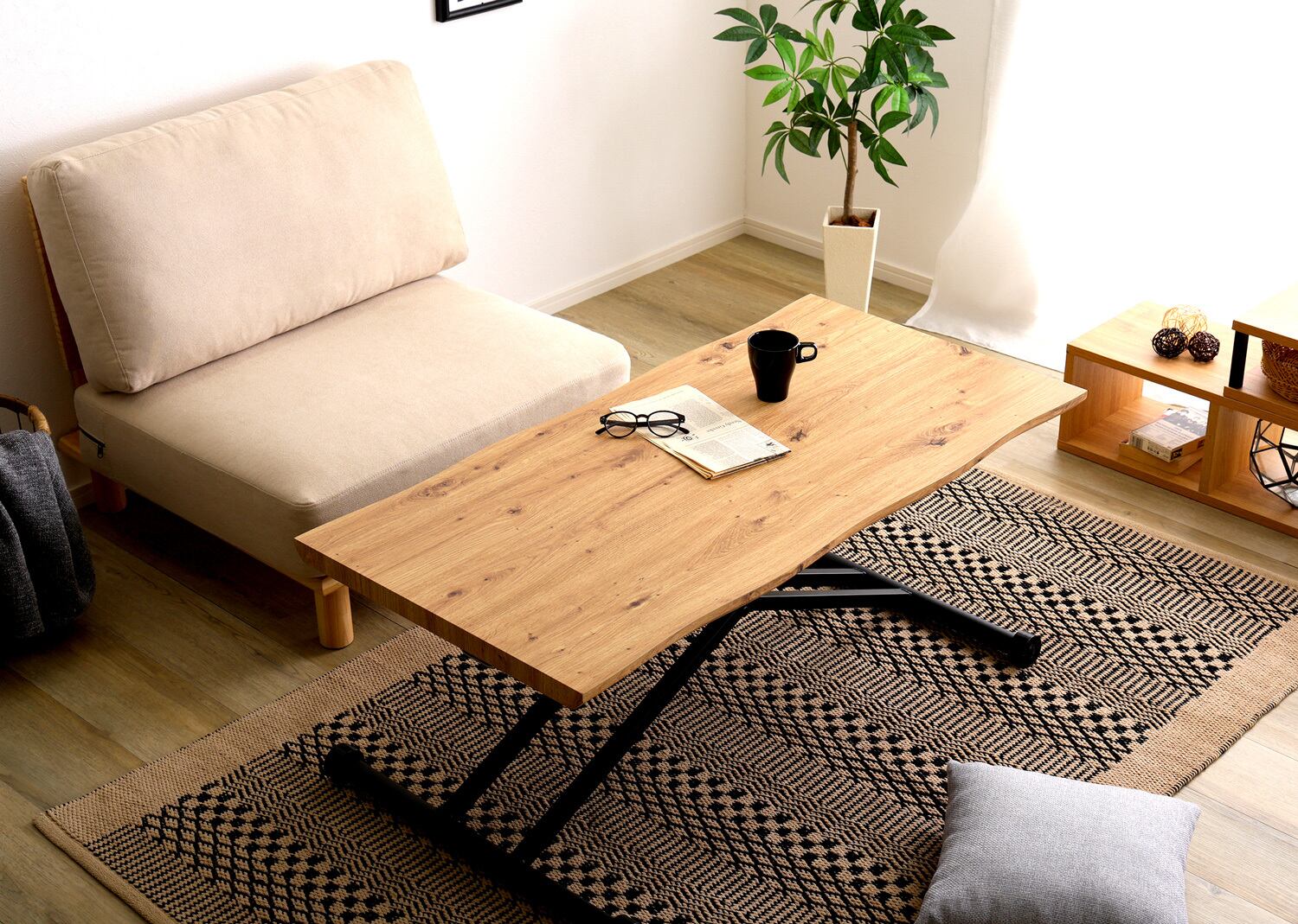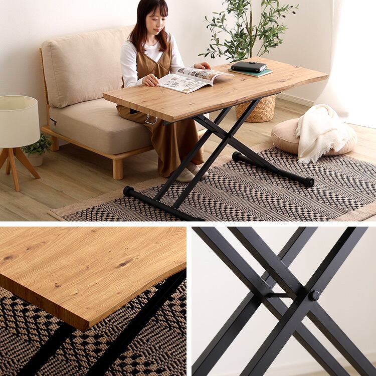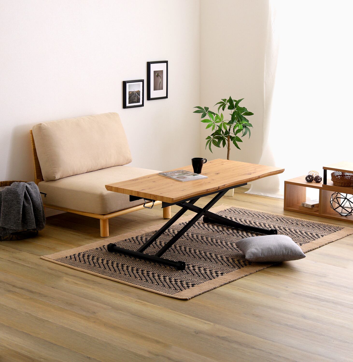 なぐり加工天板のリフティングテーブル 120cm幅 ナチュラル/ブラウン