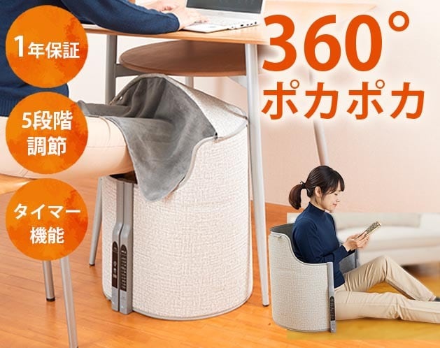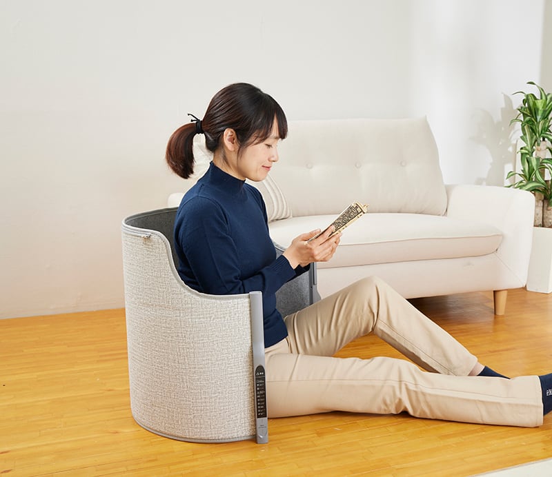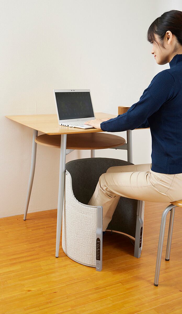 付属カバー(天面パネル)を付ければ熱を逃がさず、太ももから足先まで遠赤外線で暖かくなります。