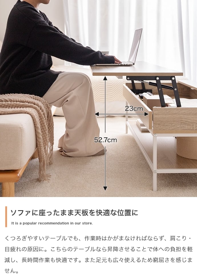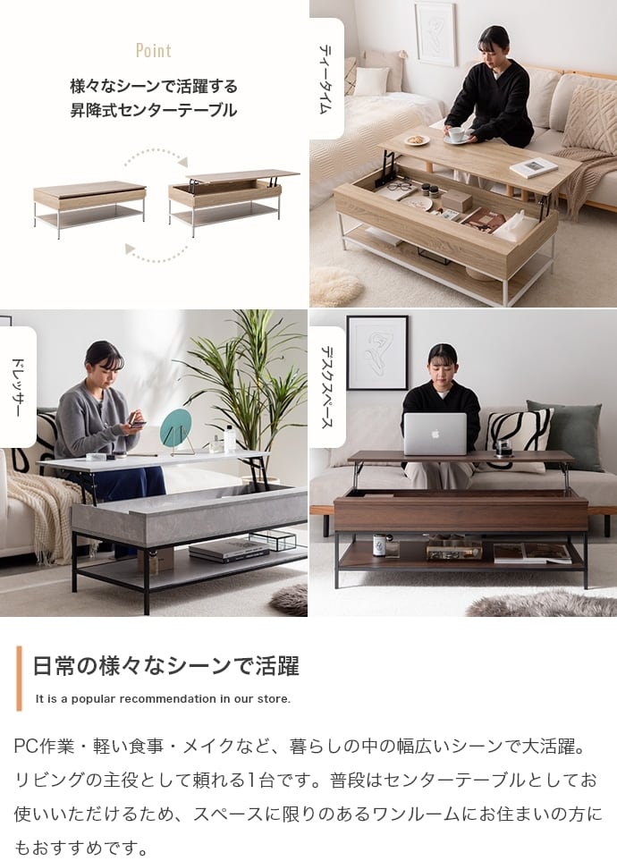 くつろぎ時間も作業時間も快適になる昇降式センターテーブル。