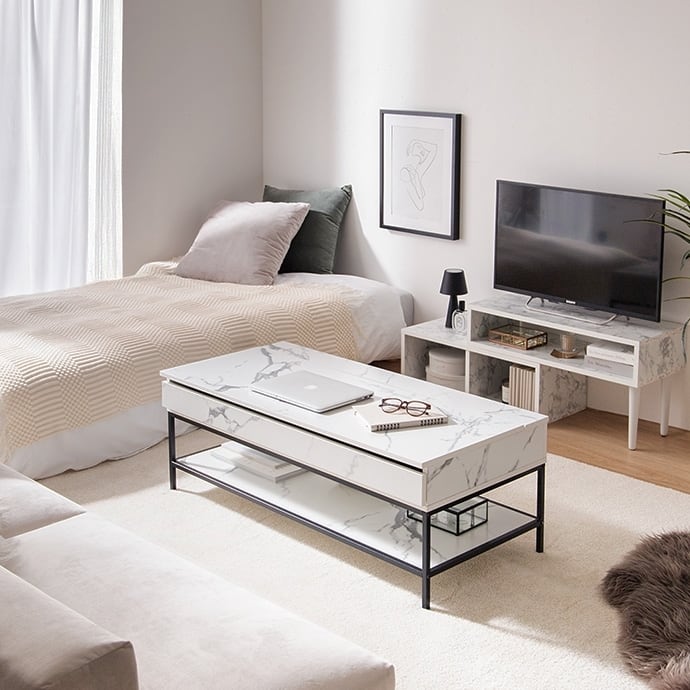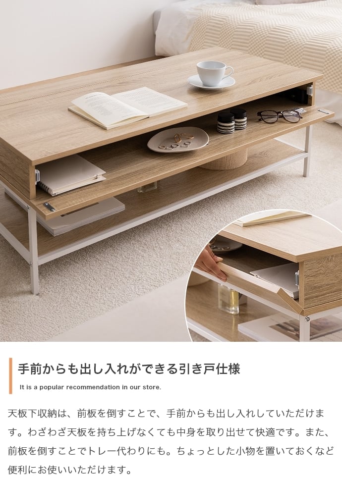 センターテーブルとデスクの1台2役で、ワンルームなど限られた空間にもおすすめです。