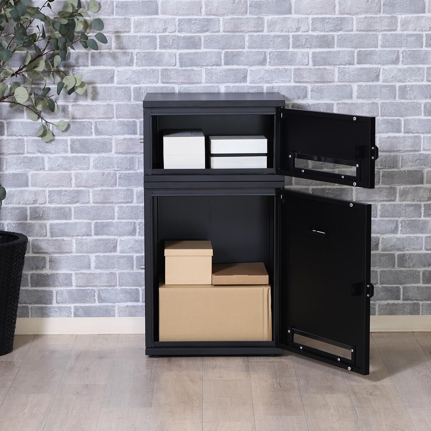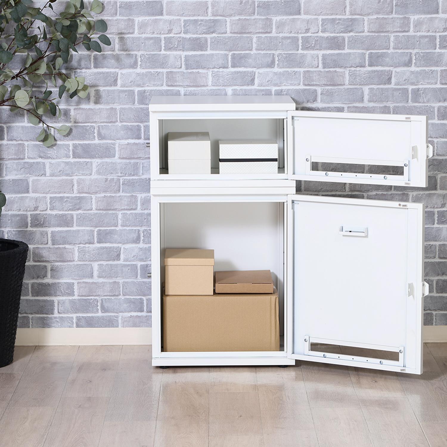 簡単ロック・盗難防止にも対応した、2段式のミニマルな宅配ボックス。