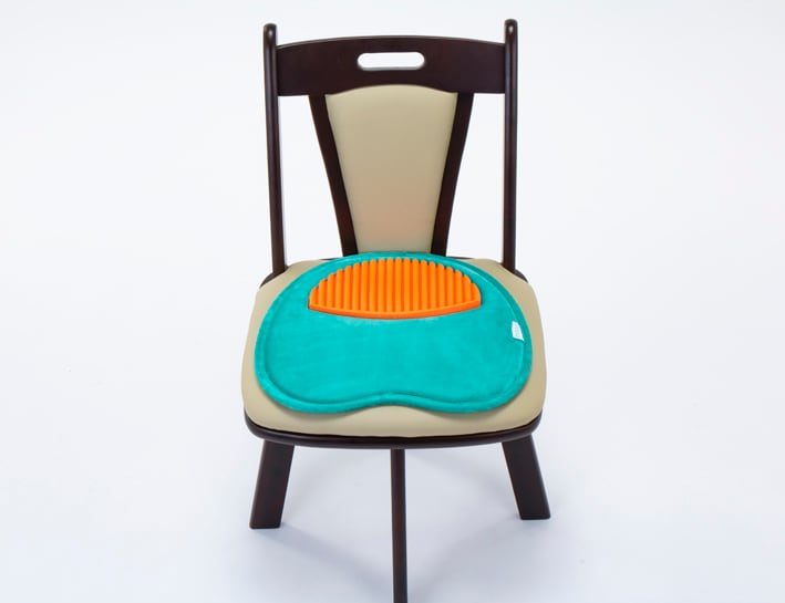 特許取得の形状により骨盤を理想的な角度に立たせるシート型のクッション。