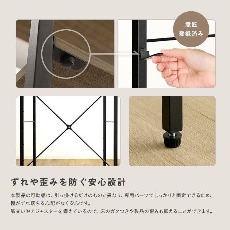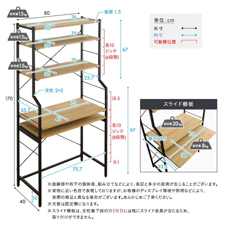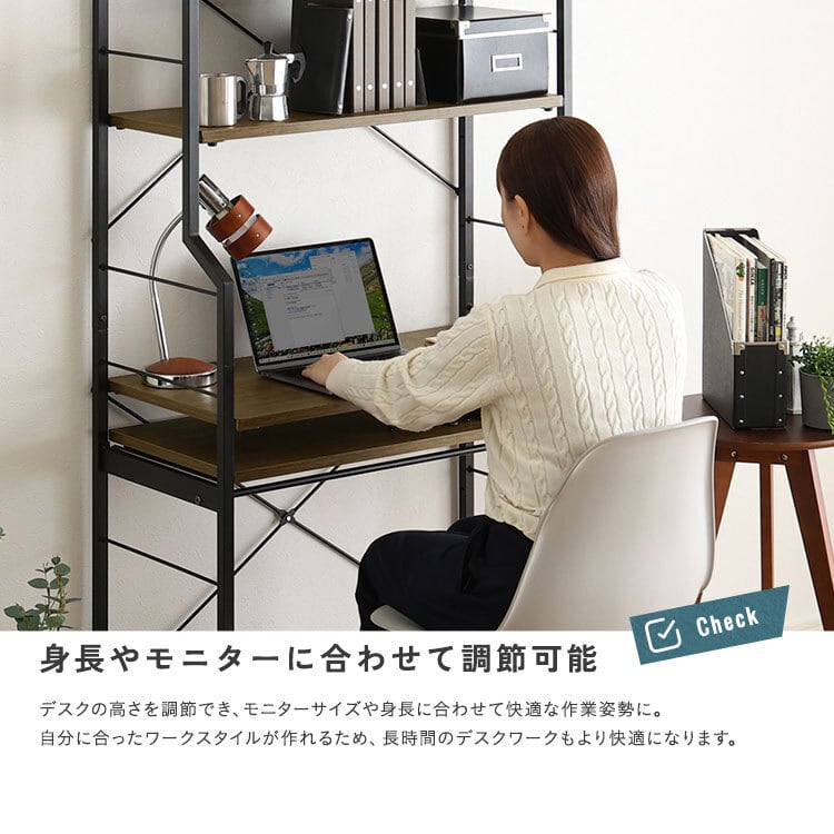 高さ調節可能な2種類の棚付きなので、デスクの高さを好きな高さに調節できます。