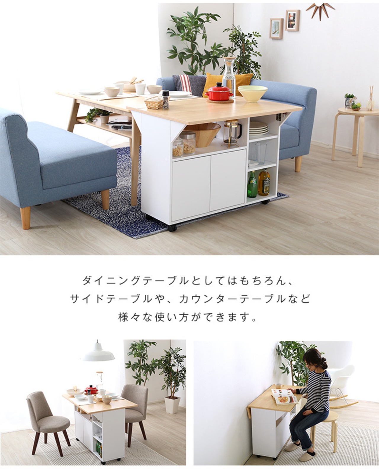 天板を広げてサイドテーブルやカウンターテーブルとして、