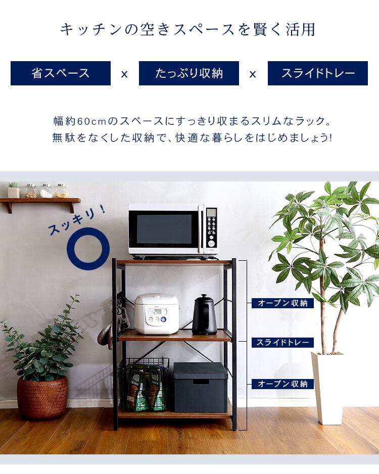 幅60cmとスリムで一人暮らしの方や追加のラックとしても最適!