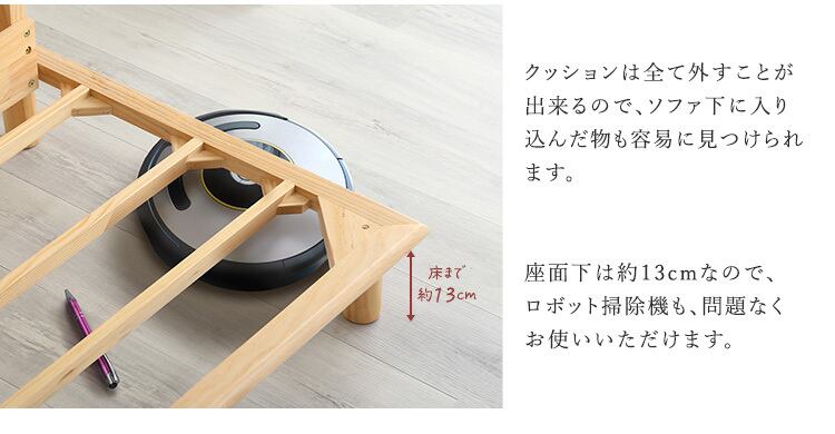 座面・背もたれは置き型なのでソファ下の空間と合わせて掃除もらくらく!