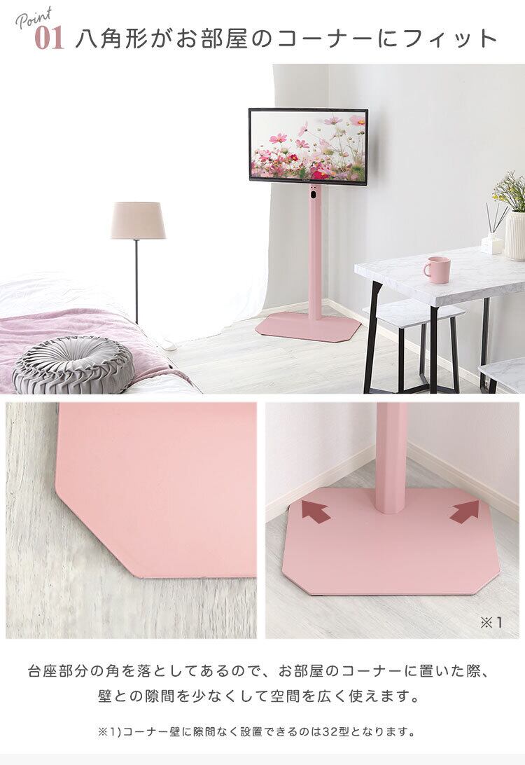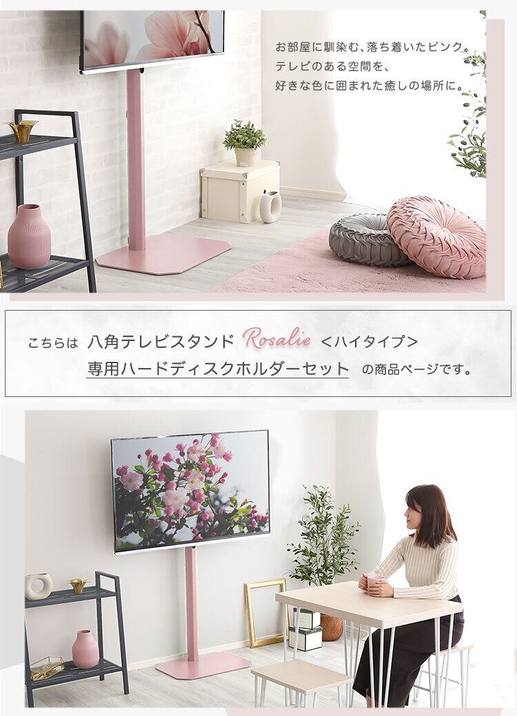 大人かわいいインテリア 八角壁寄せテレビスタンド ハイタイプ 【Rosalie -ロザリー-】 HDDホルダーセット 選べる4色