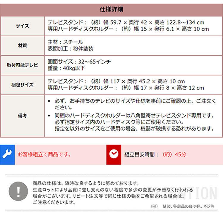 テレビスタンド:W約59.7xD約42xH約122.8-134cm