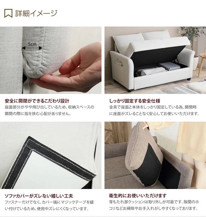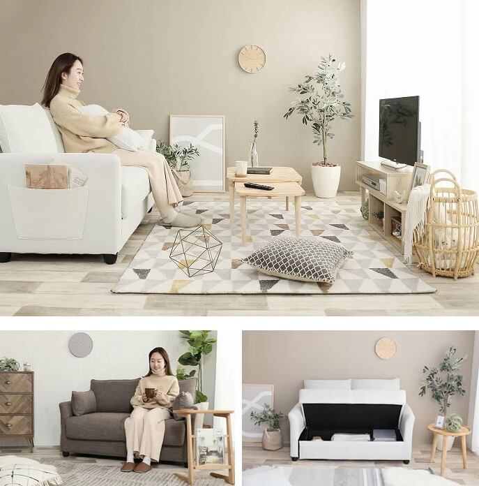 ワンルームにお住まいの方や間取りが狭く収納スペースに困る…という方に最適のソファ。