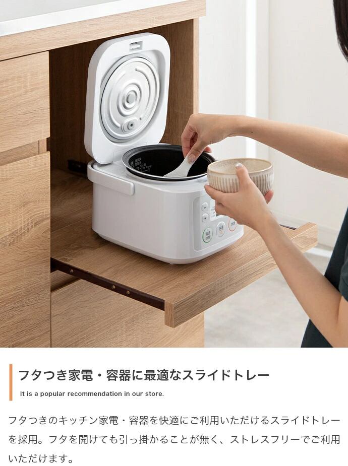 フタつきのキッチン家電・容器を快適にご利用いただけるスライドトレーを採用。