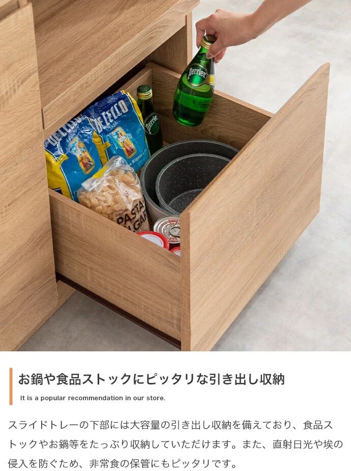 スライドトレーの下部には大容量の引き出し収納を装備。