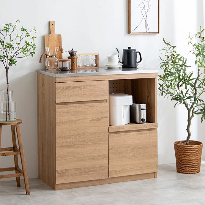 大容量の収納力を備えているため、物が多く散らかりがちなキッチンスペースにピッタリ。