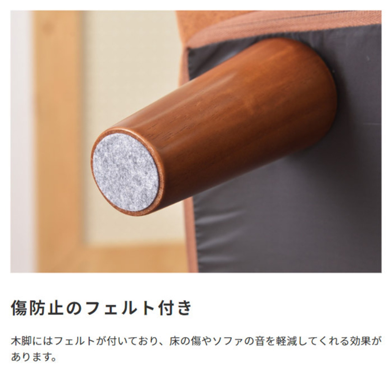木脚は取り外しができるので、フロアソファとしてもご利用可能です。