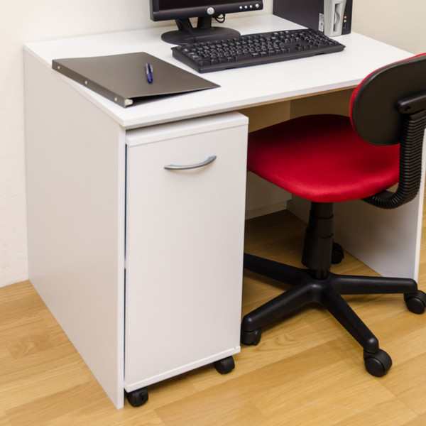 デスクサイドで役立つシンプルなデザインのチェスト。キャスター付き。