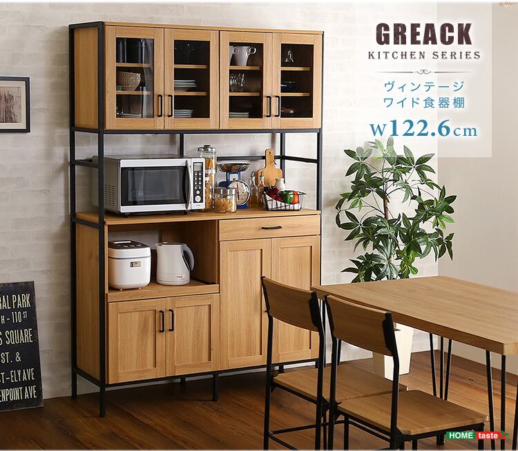 ヴィンテージワイド食器棚【GREACK-グリック-】 ウォールナット/シャビーオーク