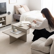 直線的なデザインと段違いの天板が目を惹くセンターテーブル。