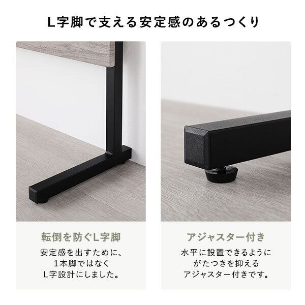 安定感を出すために、1本脚ではなくL字設計にしました。