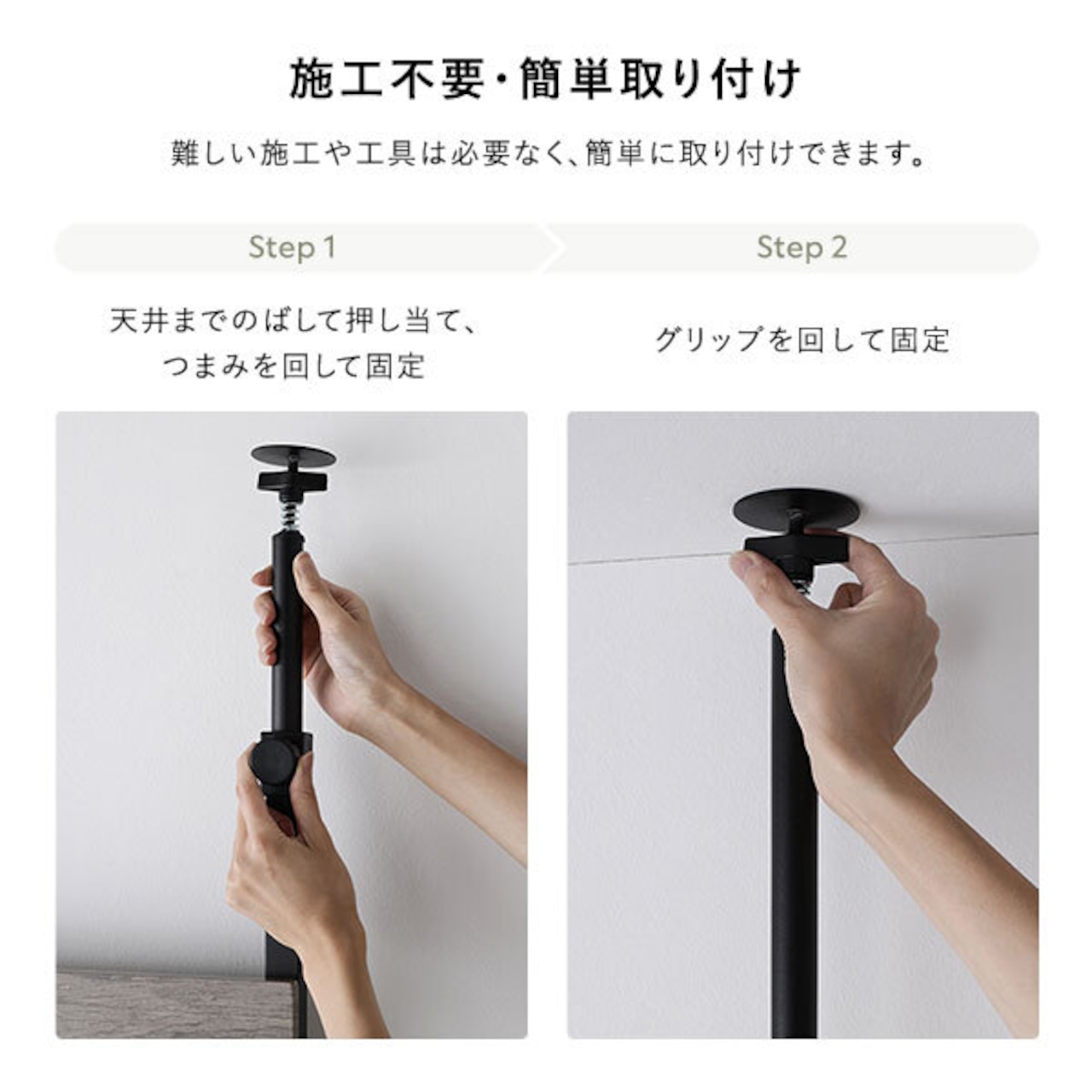 つっぱり式なので、色々な場所に簡単に設置できます。