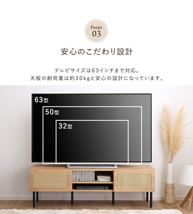 テレビサイズ63インチまで対応できます。