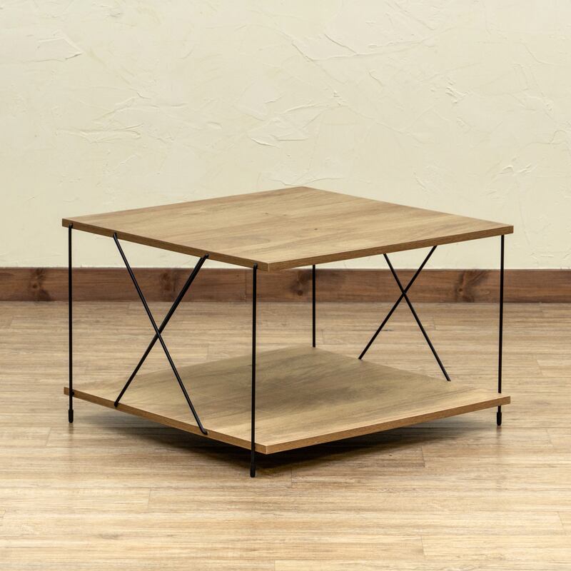 スリムなスチールフレームとヴィンテージテイストの木目柄天板を組み合わせたコーヒーテーブル。