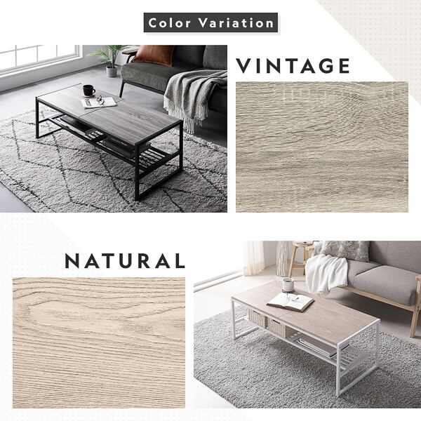 センターテーブル ローテーブル 幅105cm 収納棚付き ヴィンテージ/ナチュラル