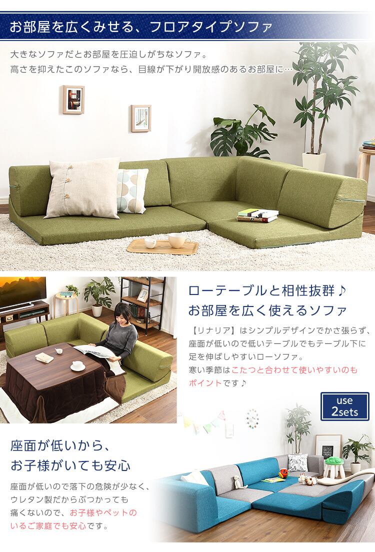 こたつやローテーブルにピッタリな日本製コーナーローソファ!